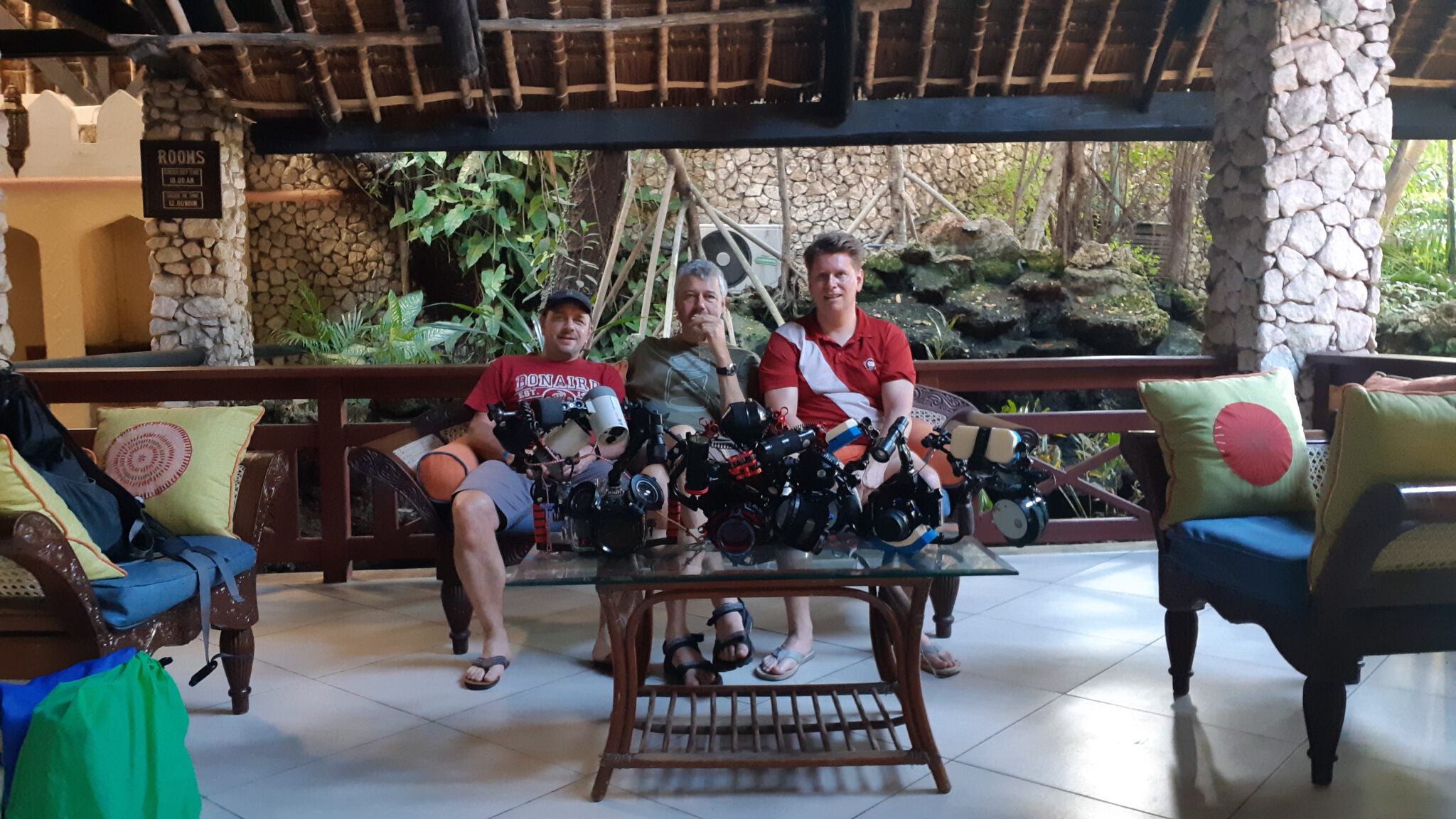 Tussen de middag werden we weer even naar het resort gebracht voor de lunch en een kleine siësta. Niet vergeten de schuifpui goed dicht te doen in verband met de apen die anders je kamer kwamen verbouwen. Na de lunch werden we even later weer gehaald voor een derde duik in de middag of een nachtduik.