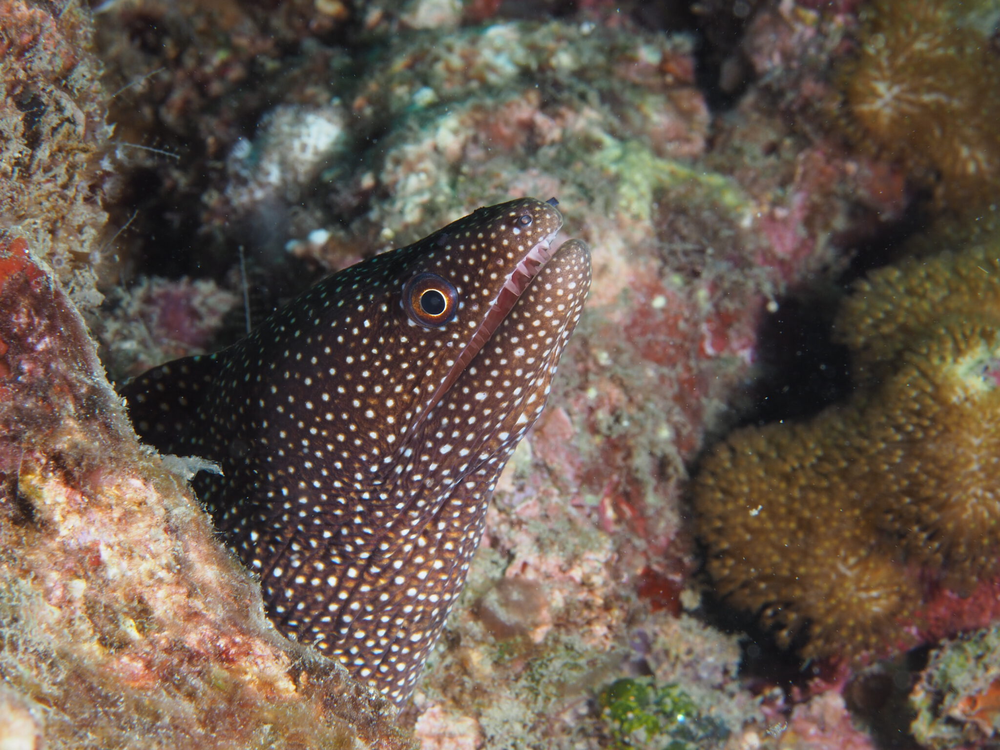 Het onderwaterleven was heel gevarieerd. Veel mooie slakjes, maar ook schildpadden, murenes, haaien mantisscrimp, langoesten. Heerlijk om te scharrelen. Er was zoveel te zien dat sommigen zoveel afleiding hadden dat ze nooit het diepste punt van shark reef gehaald hebben. Er was zekere voor de fotografen zoveel moois om even te blijven hangen. Onze gids zat met verwondering te kijken hoe te duiken met drie semi-prof fotografen mee.