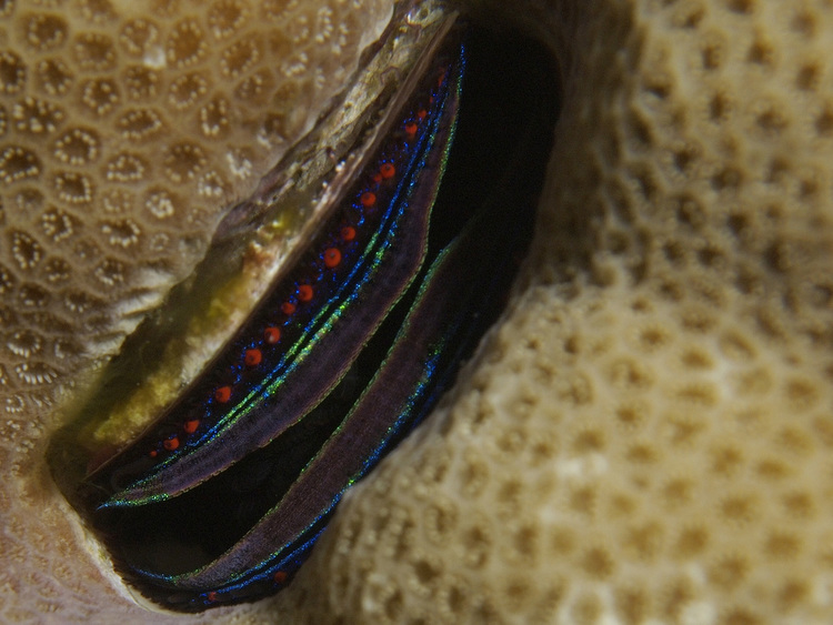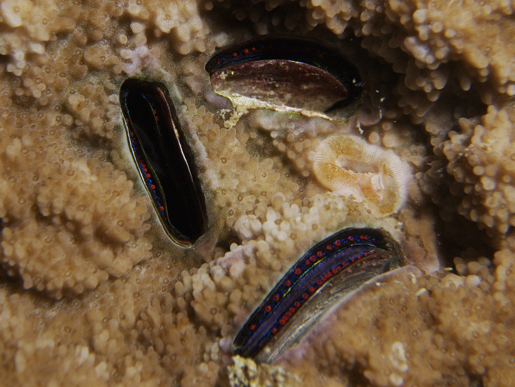 Relaties met ander leven Behalve dat het de groeivorm van de koraalkolonie kan beinvloeden en dat meerdere schelpen soms individuele takken kunnen verzwakken (doen breken) onvervindt het koraal geen hinder van de schelp(en). Integendeel zelfs! Het aanzuigen van water door de schelp kan, denkt men, de voeding van het koraal (dat niet kan zuigen) helpen. En bovendien kan de schelp met kracht water uitspuwen. Hoewel hij dat in de eerste plaats doet om afvalstoffen te verwijderen, is vastgesteld dat hij daarmee ook koraalvijanden weg jaagt. Zo beperken ze in het Groot Barriere rif lokaal zelfs de vraat van de beruchte doornenkroon zeester en andere! Aan de andere kant beschermt het harde koraal en het stekende vuurkoraal zeker ook de schelp die in het koraal veilig 'onbereikbaar' verzonken raakt en zich juist daardoor zijn breekbare schaal kan permitteren. Ten opzichte van andere koraalbewoners zoals kerstboomworpjes, doopvontschelp, wormslakken en meer is hij natuurlijk wel een lastpak, een voedselconcurrent.