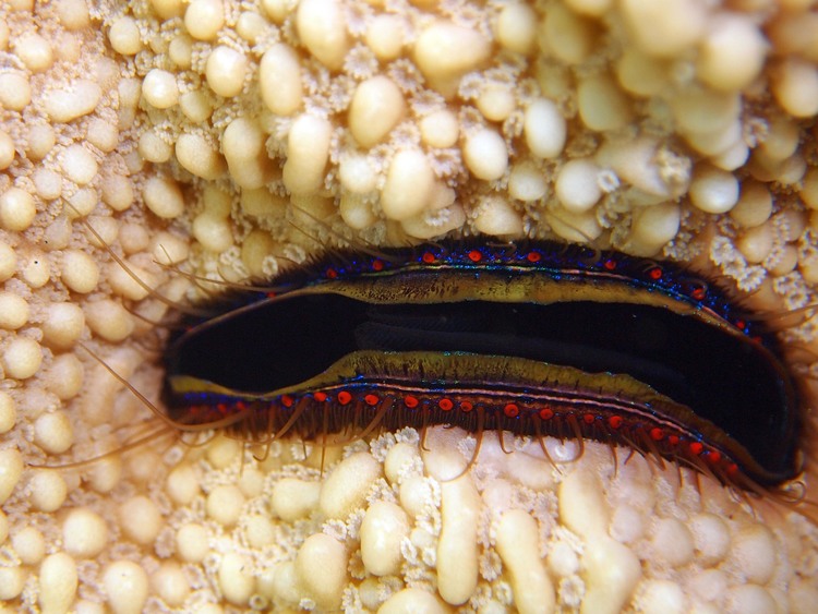 Leefwijze In zijn planktonische, nog vrijwel schelploze (larvale) jeugd-stadium leeft de kamoester vrij maar later hecht hij zich aan de top van zijn rechter klep met byssus-draden vast in een kuiltje of holte op koralen, het liefst op koralen met kleine poliepen. Ook al wordt hij vaak beschreven als een boorder, echt boren doet hij niet, hij is vooral een nestelaar die op enkele levende koralen een strategisch plekje zoekt en zich daar laat omsluiten. Helmut Debelius (alleen hij) schrijft dat het gat chemisch open gehouden wordt maar verzuimt elke toelichting. Ondertussen worden vele koraalkolonies ouder dan de schelpen zodat daarvan meerdere generaties elkaar opvolgen en traag in het koraalmassief worden opgeslokt. Zijn kleine oogjes werken volgens het principe van spiegelogen en een spiegeltelescoop: de hol gebogen binnenzijde van elk vangt het licht op en kaatst dat terug naar een voor in de oogbol gelegen netvlies. Maar omdat er geen lens is, is het beeld vaag. Met zijn tentakels voelt hij.