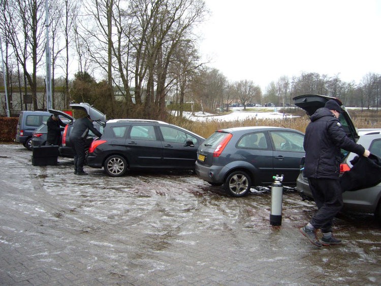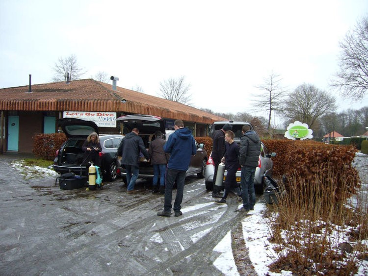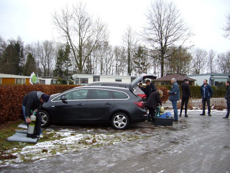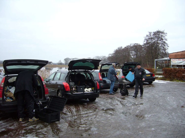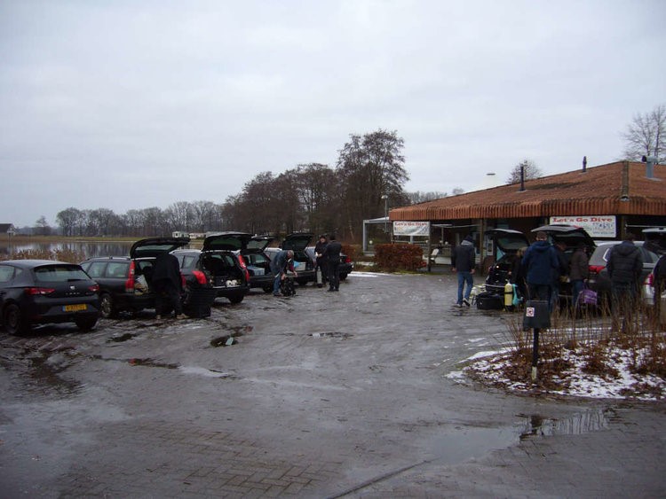 Op zondag 8 januari hielden we onze nieuwjaarsduik om 2 uur 's middags in het Veenmeer in Tynaarlo. De omstandigheden waren prima; (helaas) geen ijsduik, alleen nog een beetje aangereden sneeuw van de afgelopen dagen op de parkeerplaats. We konden parkeren bij het restaurant. Het duikcentrum uit Sappemeer had daar geen activiteiten, dus de weg was vrij voor ons.