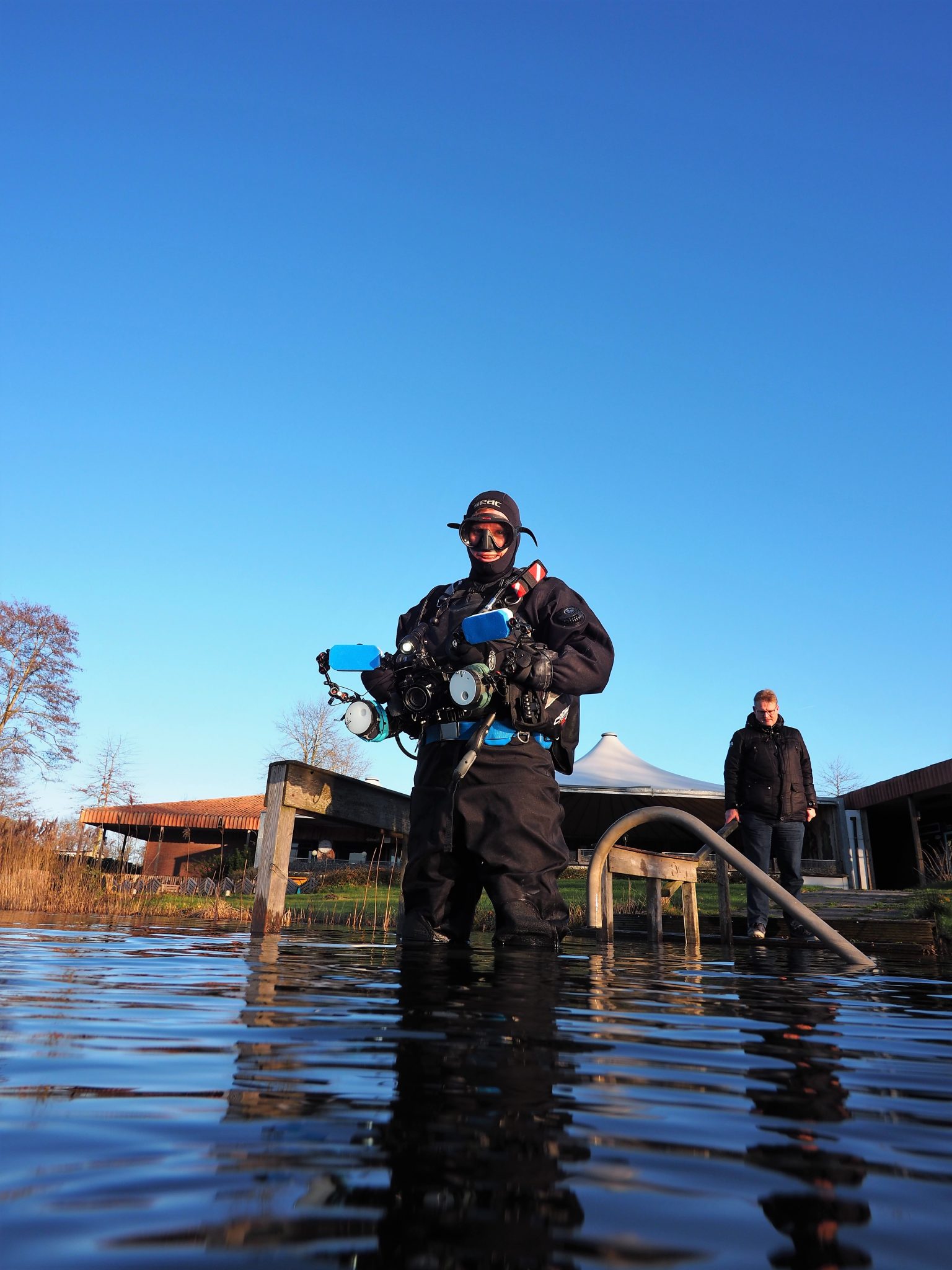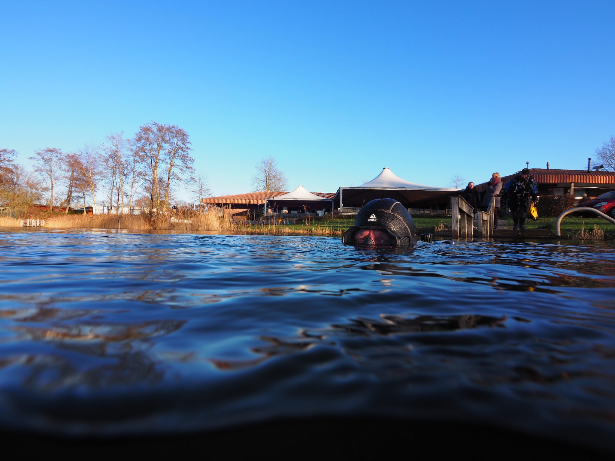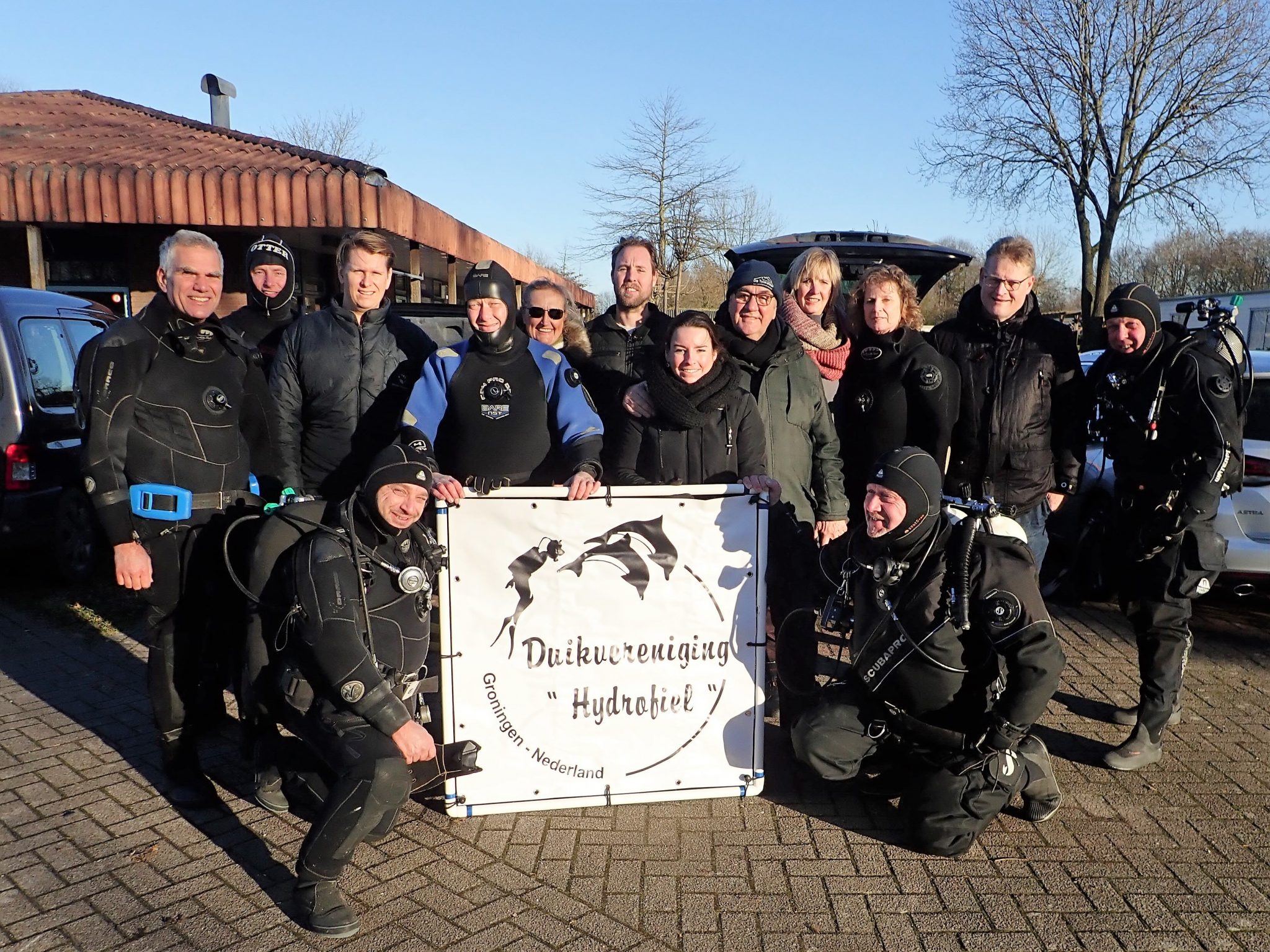Op 7 januari, de eerst zondag in 2018 was het tijd voor de traditionele nieuwjaarsduik van Hydrofiel. Het was die dag 's middags amper 3 graden, nauwelijks wind en een zonnetje dat zich van z’n beste kant liet zien. Perfect duikweer dus. Zeker acht leden dachten daar hetzelfde over en waagden een duik in het water van ’t Veenmeer. Zes Hydrofielers waren als supporter naar het duikspektakel gekomen. Het zicht onder water was redelijk, geschat 2 meter en met de lichtinval van de zon was het best een mooie duik. De watertemperatuur was 5 graden, 2 graden warmer dan de luchttemperatuur. Voor de supporters was het even doorbijten. Om het supporten wat aangenamer te maken en te zorgen voor een warme boost na de duik had Gosse gezorgd voor warme chocolademelk en uiteraard voor de traditionele nieuwjaarrolletjes met slagroom. En alsof dat nog niet genoeg was, waren er ook in chocolade gedoopte druiven, een creatieve uitspatting van Anja. Enkele duikers hadden de gelegenheid te baat genomen door met fotoapparatuur het water in gaan. Dit heeft enkele leuke plaatjes opgeleverd die hieronder te zien zijn. Na circa 2 uur waren de duikers weer warm aangekleed, waren de supporters voldoende afgekoeld en bijgekletst om weer huiswaarts te keren.