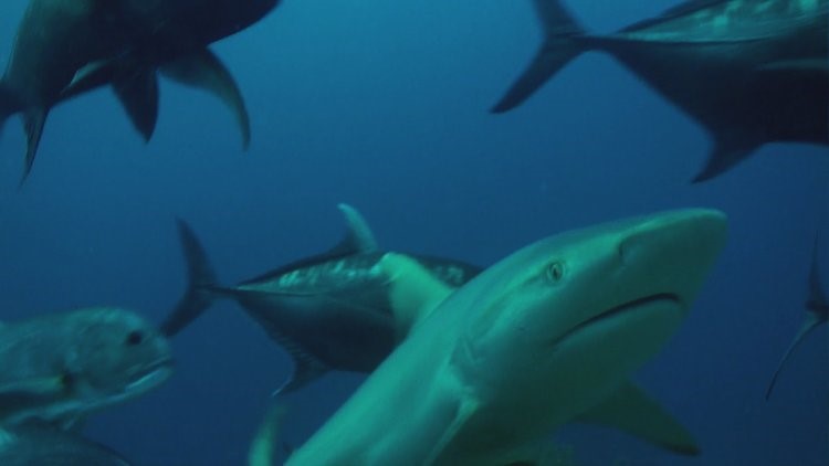 Daarnaast zijn we op een aantal weredberoemde duikstekken geweest: Fish Head, Maaya Thila en Hafza Thila. Deze 3 duikstekken zijn beschermd gebied; er mag niet gevist worden. Het zijn enorm visrijke gebieden en als er stroming staat, wemelt het er van de haaien. We hadden geluk: er stond stroming en we hebben Griize Rifhaaien, Witpunt Rifhaaien, Zwartpunt Rifhaaien en Verpleegster Haaien gezien. Soms kwamen er meerdere haaien met een heel gevolg aan Tonijnen en Makrelen voorbij. Ik bleek ook regelmatig op de juiste plek te zitten. De haaien kwamen af en toe zeer dicht langs me. Enorm mooie en sierlijke beesten die helemaal gebouwd zijn op snelheid en kracht.