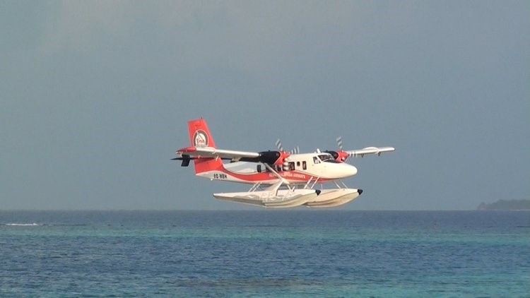 Om middernacht kwamen we aan in Dubai en ruim 3 uur later vlogen we verder naar de Malediven. De totale vliegtijd is 10 uur. Op de Malediven worden we met een busje naar de terminal van de watervliegtuigen gebracht en ruim een uur later vliegen we naar Velidhu. Deze vlucht met het watervliegtuig is altijd een belevenis; je vliegt op ongeveer 800 meter hoogte en ziet de atollen met de eilanden en de vele kleuren blauw en groen die de Indische Oceaan heeft.