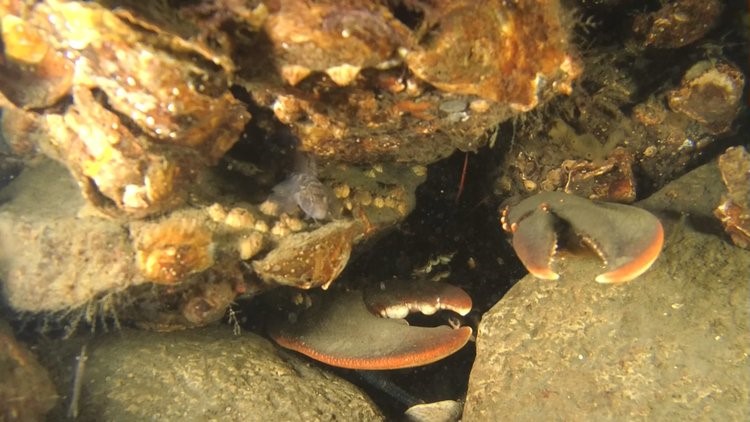 We hoopten de zeedonderpadden met eieren te treffen, maar daar was het helaas nog te warm voor. De temperatuur onder water was 9 graden (2 graden warmer dan in het zoete water van het Veenmeer en de Beertsterplas!). Wel zijn er slakdolven gesignaleerd en kwamen we de nodige Galathea kreeften tegen. Bij de Zeelandbrug breidt de Dodemansduim zich bovendien behoorlijk uit. Opnieuw de nodige Fluwelen zwemkrabben, terug van jarenlang weg geweest. Je ziet ze nu steeds meer. Daarnaast viel op dat er een enorme hoeveelheid brokkelsterren in de Oosterschelde zit. De afgelopen winters, die te zacht waren, zijn daar debet aan. Ook de wulk liet zich zien; ik heb echter geen eieren van de wulk aangetroffen, terwijl het daar wel de tijd voor is. Ook daarvoor nog te warm? Verder waren er heel veel penseelkrabben te zien en natuurlijk weer de Noordzeekrabben en Noordzeekreeften. Ook de Mnemiopsis Leidyi was talrijk aanwezig zowel in de Oosterschelde als het Grevelingenmeer.
