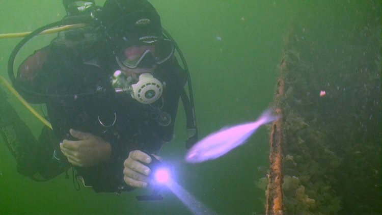 De derde duik die dag ging naar de Zeehond, één van de drie wrakken bij Scharendijke en volgens mij het mooiste wrakje. Vanwege de ondiepe ligging is er natuurlijk licht; het wrakje is mooi begroeid en er is altijd vis. Toen we langs de boeilijn afdaalden kwamen we de eerste dwergbolken al tegen. Op het wrak veel dwergbolken en daarnaast botervisjes, een kleine zeedonderpad, fluwelen zwemkrabben, een paar steenbolken en een enkele Elysia. Prachtige duik met mooi zonlicht. We waren de enige duikers op dit wrak. Op kompaskoers terug gedoken naar de trap bij het platform en daar nog even bij de pilaren rond gekeken. Ook weer van alles te zien natuurlijk, waaronder opnieuw zeenaalden.